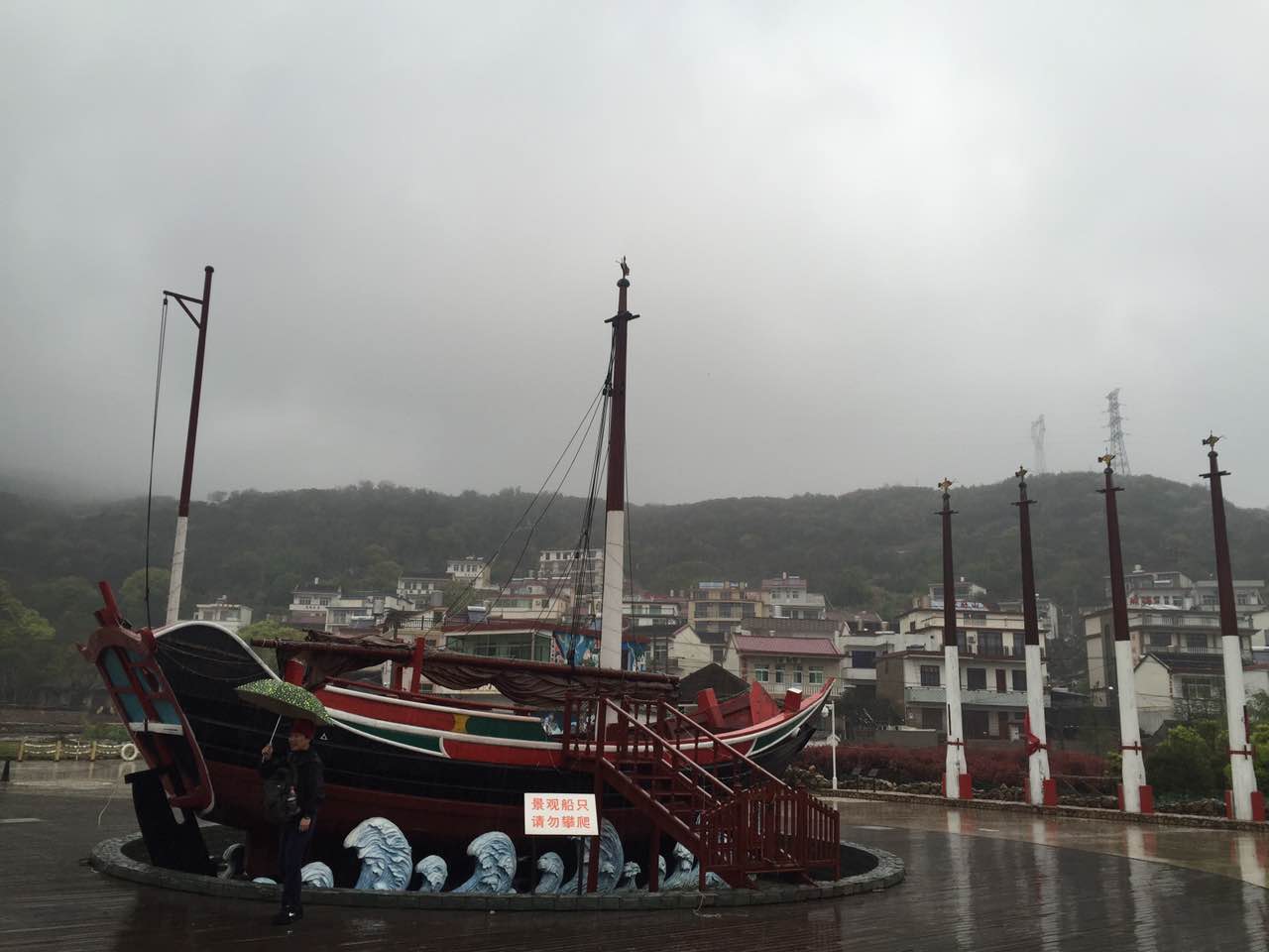 第一站旅途是嵊泗海洋文化陳列館和大悲山。在文化館里,展示了嵊泗列島特有的一些生活和捕魚文化,還有當地著名的漁民畫,色彩鮮艷十分漂亮,讓我們增強了不少閱歷。再往上走,便是大悲山觀景臺。受天氣的影響,雖然霧氣騰騰,但一路過去,在那空中俯瞰山景,一條石徑坎于莽莽綠色之中,宛如綿延的飄帶。越往上就越精彩,山間云霧撩繞俯看人間煙火,好一幅大自然的絕妙圖景,讓人贊嘆,并以其獨特的風光給我們留下了深刻的印象。